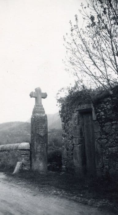 Ce pilori consiste en un bloc cylindrique de marbre gris. Il est dressé à l'entrée du pont qui franchit un ruisseau, tout près du mur de clôture de l'ancienne abbadie. Au-dessus d'un écusson en relief sont encore visibles les attaches des chaînes et les traces de leurs frottements. L'écusson présente un écartelé d'une fleur de lys et d'une vache, surmonté d'un chef chargé d'un bâton de justice et soutenu d'une champagne portant le millésime 1682. Les fleurs de lis royales, associées aux vaches, emblême du Béarn, attributs qui se voyaient sur les anciennes monnaies locales. L'ensemble est surmonté d'une croix moderne.