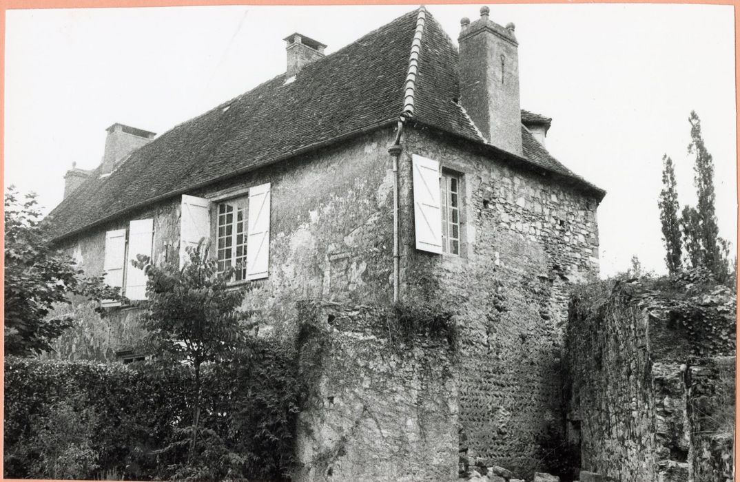 Etablie sur l'ancien mur d'enceinte, la maison de plan barlong est construite en pierres plates et en cailloux roulés. Elle conserve quelques éléments intéressants : souches de cheminées, pignons, consoles d'anciens mâchicoulis couverts, fenêtres à meneaux, détails de moulurations des encadrements de fenêtres. La construction se prolonge par une galerie qui conduisait à l'ancien pigeonnier.