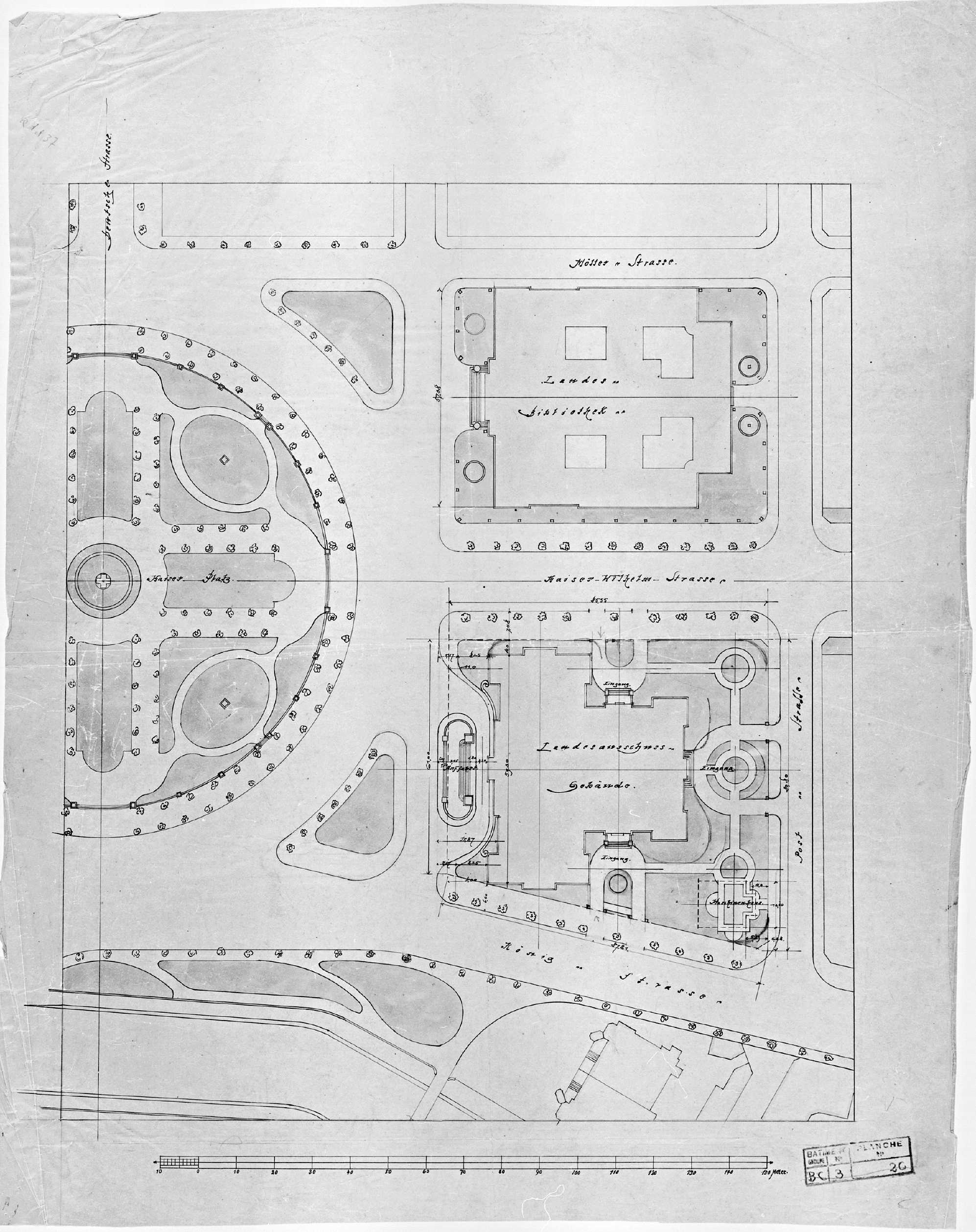Le Landesausschuss, palais de la Diète d'Alsace-Lorraine, puis Parlement, est construit, après concours, par les architectes August Hartel et Skjold Neckelmann, de 1888 à 1892. C'est l'un des édifices majeurs du plan d'urbanisme exécuté à Strasbourg pendant l'annexion de l'Alsace-Lorraine. La partie postérieure de ce palais de style néo-Renaissance a été détruite par bombardement en septembre 1944. Depuis 1957, un théâtre avec une salle de plan circulaire occupe cet emplacement ; il a été dessiné en 1950 par l'architecte Pierre Sonrel en collaboration avec Michel Saint-Denis, directeur du théâtre national de Strasbourg.