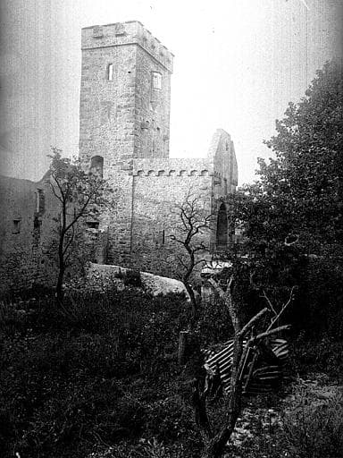 Ces remparts ont subi des dommages de guerre : la porte est devenue une ruine.
