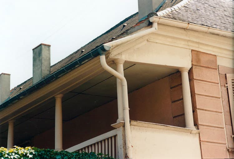Maison à la structure analogue à celle de la maison Grünwasser, dont les galeries sur cour comportent des colonnettes doriques en bois. A subi des dommages de guerre.