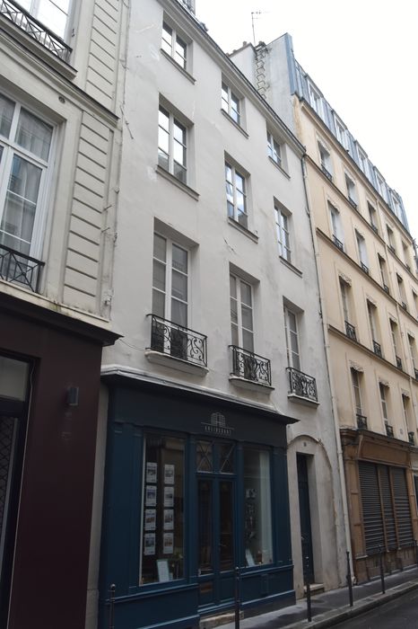 L'immeuble date de la fin du 17e siècle ; la devanture en bois date du début du 19e siècle. Il s'agit de coffrages de bois scandés par six pilastres. Ce modèle simple était courant et représentatif des commerces de la première moitié du 19e siècle. Ces dernières années, de nombreux exemples ont été démolis, la conservation de quelques exemplaires s'impose.