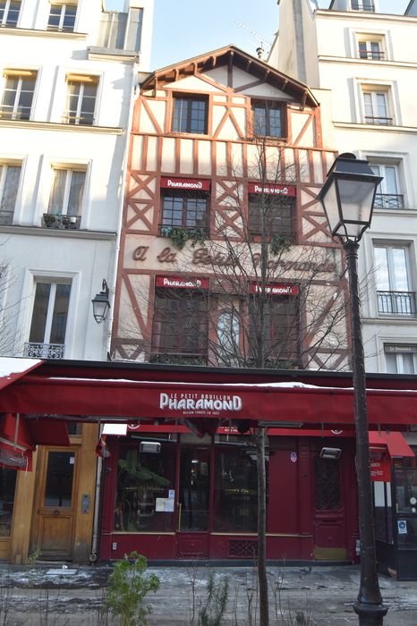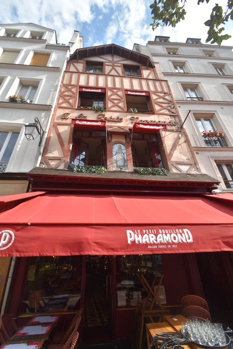 Ce restaurant, spécialisé dans les tripes, est le dernier représentant de ce type de restaurant, dont la décoration en céramiques, miroirs en pâte de verre est dûe à l'atelier Picard et Cie. Bien que revendiquant une ancienneté remontant à l'année 1832, Alexandre Pharamond, Normand d'origine, ne sert ses premières types qu'en 1877. A l'enseigne de La petite Normande, le restaurant est entièrement décoré de neuf à l'occasion de l'Exposition Universelle de 1900. Il comprend au rez-de-chaussée, une grande salle en longueur au fond de laquelle un petit escalier tournant donne accès à la salle, plus petite, du premier étage. Le dernier étage est formé de quatre petits salons contigus dont un formant débarras. Le décor de glaces et de panneaux peints en pâte de verre comporte une iconographie évoquant la spécialité culinaire de la maison, les tripes à la mode de Caen. La façade sur rue, en imitation de pans de bois normands, daterait des années 1930, et incorpore une plaque de faïence montrant une jolie Normande en costume de fête, à l'origine sans doute du nom de l'établissement à la fin du siècle dernier.
