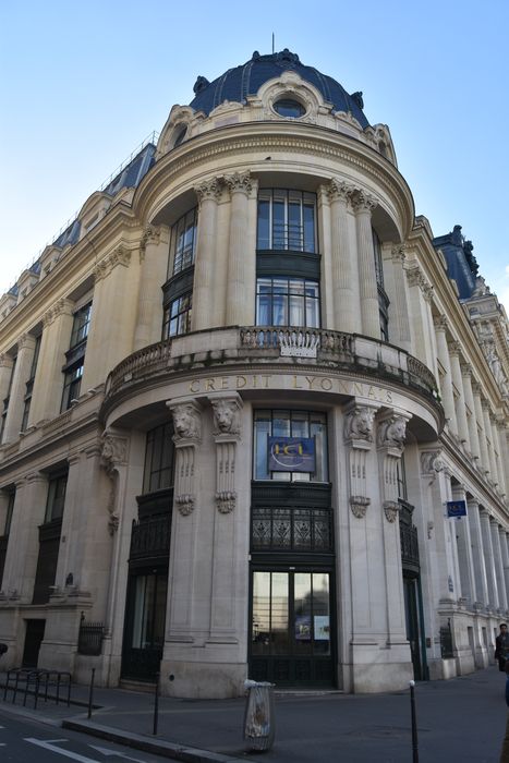 Banque fondée à Lyon en 1863 par Henri Germain. Abritant le siège central parisien de l'entreprise, cette construction est commencée en 1875 à l'angle du boulevard des Italiens et de la rue de Choiseul, à l'emplacement de l'hôtel de Boufflers. William Bouwens van des Boijen, architecte d'origine néerlandaise naturalisé en France, aidé de son fils Richard, est chargé des travaux et signe notamment, en 1882, le grand escalier à vis à double révolution, inspiré de celui du château de Chambord. La construction du siège de la banque se poursuit sous la direction des mêmes architectes par agrandissements successifs entre 1882 et 1913, l'architecte André-Felix Narjoux prenant la direction des travaux à partir de 1905. Pour l'achèvement du siège et de la façade donnant sur la rue du Quatre-Septembre (1912) , le Crédit Lyonnais fait aussi appel à l'architecte Victor Laloux. En 1913, l'édifice occupe enfin l'ensemble de l'îlot d'un hectare entre cette rue, le boulevard des Italiens et les rues de Gramont et de Choiseul. C'est un ensemble important dont le caractère monumental unifie la diversité des façades conçues au cours des différentes campagnes. Si le hall des titres a disparu, à l'intérieur subsistent l'agence centrale avec ses deux halls boulevard des Italiens, modernisée dans son mobilier mais intacte dans son architecture, et l'agence Quatre-Septembre, qui a perdu ses appuis métalliques à hauteur des galeries, mais dont l'armature métallique de la coupole peinte de teinte claire est toujours visible. La salle du conseil a gardé son décor et son mobilier. L'édifice a été gravement endommagé par un incendie le 5 mai 1996.