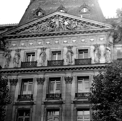 Façades et toitures sur rue ; grand escalier ; salle du Conseil ; halls et vestibules sur le boulevard des Italiens et la rue du Quatre-Septembre (cad. 02 : 01 AC 44) : inscription par arrêté du 13 mars 1989