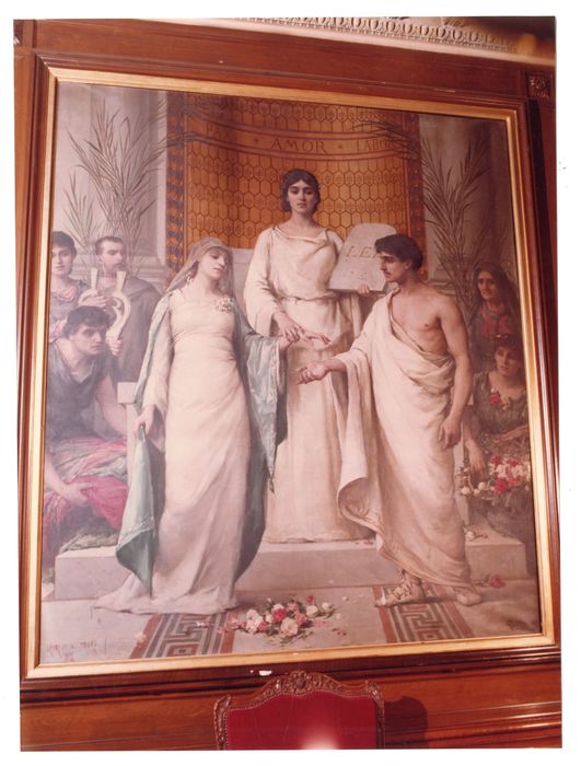 Façades et toitures sur rue et sur cour ; vestibule d'entrée et salle des mariages avec son décor au premier étage (cad. 02 : 02 AE 61) : inscription par arrêté du 7 mai 1982