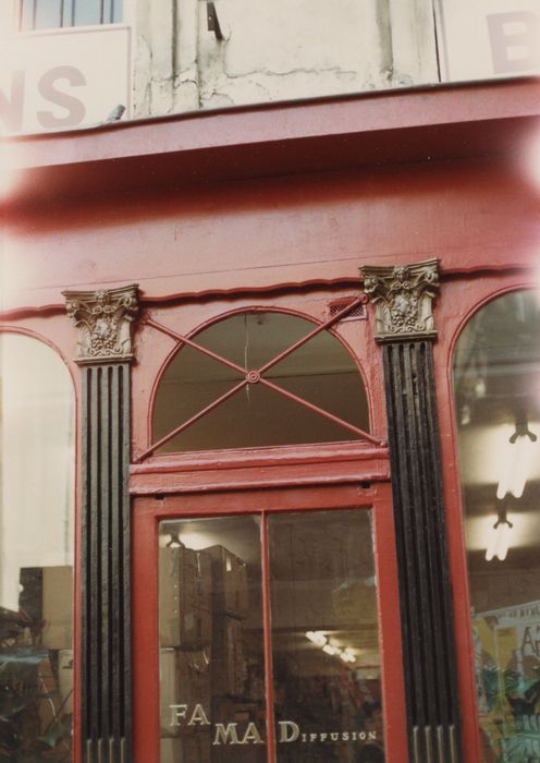 Cette boutique occupe le rez-de-chaussée d'un immeuble de rapport sans grand intérêt. La boutique est assez caractéristique de l'époque Restauration ; il s'agit sans doute d'un ancien débit de boisson. Seule la devanture de la boutique est intéressante ; elle présente un coffrage de bois simple composé de panneaux rectangulaires et d'un jeu d'arcature. L'entrée se compose d'une large baie encadrée par deux pilastres de bois ornés de chapiteaux en fonte de fer représentant des feuilles d'acanthes, des raisins et des têtes de Bacchus.