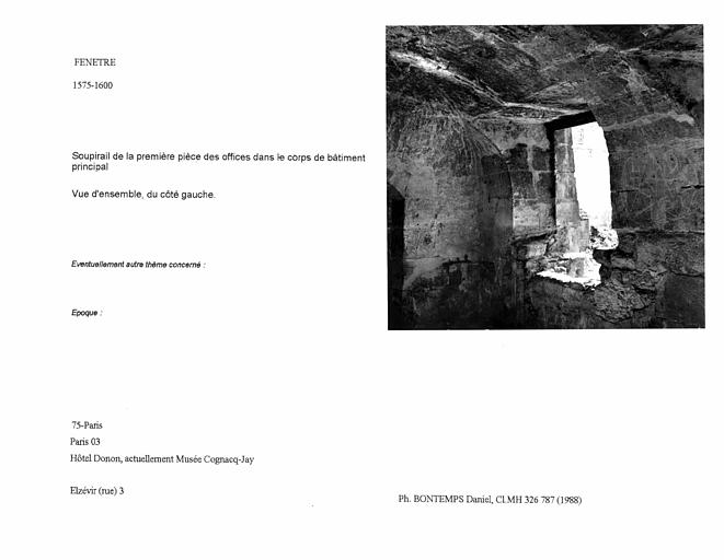 © Monuments historiques, 1992. Cette notice reprend intégralement les termes de l’arrêté de protection au titre des Monuments historiques. Elle répond à l’obligation réglementaire du ministère de la Culture d’établir la liste générale des immeubles protégés (art. R. 621-80 du Code du patrimoine). Elle est donc opposable et fait foi juridiquement. Aucune copie numérique ou papier ne sera fournie par courrier ni courriel. Le dossier de protection complet et l’arrêté sont consultables uniquement sur place, dans la salle de lecture de la Médiathèque du patrimoine et de la photographie (MPP), à Charenton-le-Pont (Val-de-Marne).