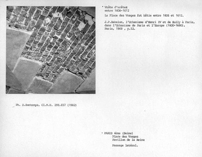© Monuments historiques, 1992. Cette notice reprend intégralement les termes de l’arrêté de protection au titre des Monuments historiques. Elle répond à l’obligation réglementaire du ministère de la Culture d’établir la liste générale des immeubles protégés (art. R. 621-80 du Code du patrimoine). Elle est donc opposable et fait foi juridiquement. Aucune copie numérique ou papier ne sera fournie par courrier ni courriel. Le dossier de protection complet et l’arrêté sont consultables uniquement sur place, dans la salle de lecture de la Médiathèque du patrimoine et de la photographie (MPP), à Charenton-le-Pont (Val-de-Marne).