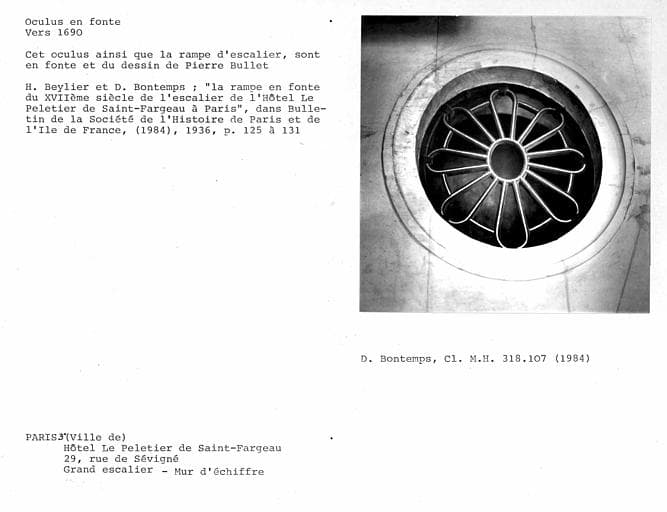 © Monuments historiques, 1992. Cette notice reprend intégralement les termes de l’arrêté de protection au titre des Monuments historiques. Elle répond à l’obligation réglementaire du ministère de la Culture d’établir la liste générale des immeubles protégés (art. R. 621-80 du Code du patrimoine). Elle est donc opposable et fait foi juridiquement. Aucune copie numérique ou papier ne sera fournie par courrier ni courriel. Le dossier de protection complet et l’arrêté sont consultables uniquement sur place, dans la salle de lecture de la Médiathèque du patrimoine et de la photographie (MPP), à Charenton-le-Pont (Val-de-Marne).