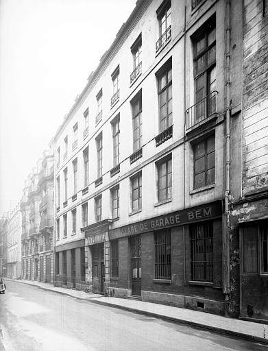 Les façades et toitures sur rue et sur cour du corps de bâtiment, côté rue des Tournelles ; les façades et toitures sur rue et sur cour du corps de bâtiment, côté bd Beaumarchais ; l'escalier avec sa cage et sa rampe en bois situé dans le corps de bâtiment sur la rue des Tournelles : inscription par arrêté du 13 juin 1961