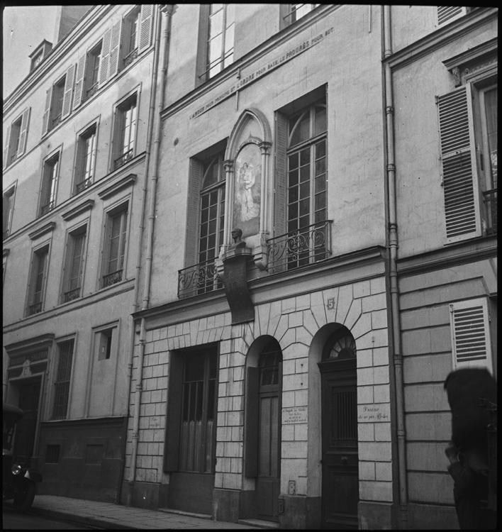 Les façades et les toitures sur rue et sur cour ; les caves ; la cage d'escalier à partir du troisième niveau ; la colonne dorique en bois au rez-de-chaussée, la Chapelle de l'Humanité au premier étage (cad. 03-03 AO 27) : inscription par arrêté du 19 février 1982