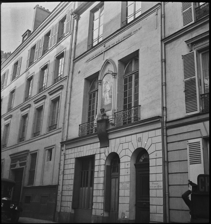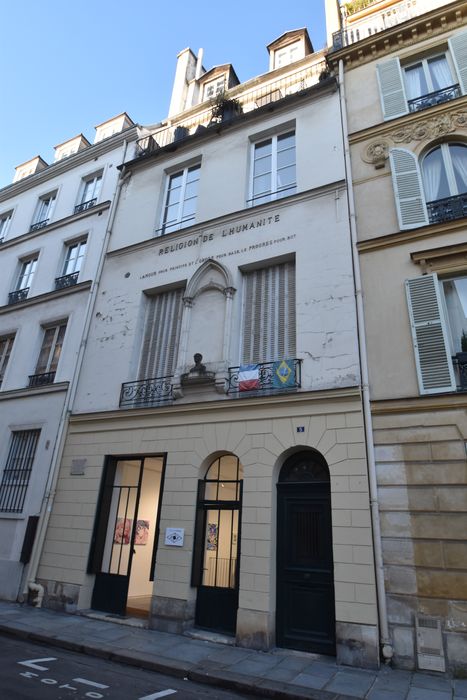 Terrain acheté en 1642 par François Mansart, sur lequel il construit sa propre maison, dans laquelle il réside jusquà sa mort en 1666. Après divers propriétaires, l'immeuble est vendu en 1842 à un bijoutier, Antoine Bret, qui le fait surélever. C'est peut-être au troisième étage de cet immeuble (ou du n° 7) que vivait Clotilde de Vaux, égérie d'Auguste Comte, philosophe et fondateur du mouvement positiviste. En 1903, l'immeuble, acheté par une association de positivistes sud-américains, devient le Temple de l'Humanité. La façade sur rue est transformée par l'architecte Gustave Goy (statue de Clotilde de Vaux en "vierge mère", buste d'Auguste Comte et inscription "L'amour pour principe et l'ordre pour base, le progrès pour but") , ainsi que la grande salle du premier étage qui devient la chapelle du culte positiviste.