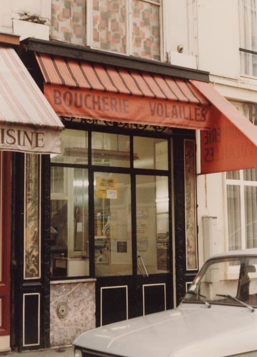 Boucherie en rez-de-chaussée d'un immeuble datant de la fin du 19e siècle. La devanture, datant du début du 20e siècle, comporte une grille en fer forgé d'inspiration Art Nouveau, attribuée à la maison Vignal et Bodmer, spécialisée dans l'installation de boucheries.