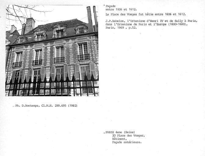 Île-de-France ; Paris (75) ; Paris 4e Arrondissement ; 20 place des Vosges