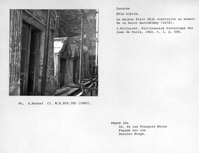 Façades et toitures, y compris le retour du numéro 48 sur la rue Geoffroy-l'Asnier ; l'ensemble des sous-sol voûtés se trouvant sous les trois immeubles ; l'escalier de bois de l'immeuble numéro 44 rue François-Miron : classement par arrêté du 18 octobre 1966