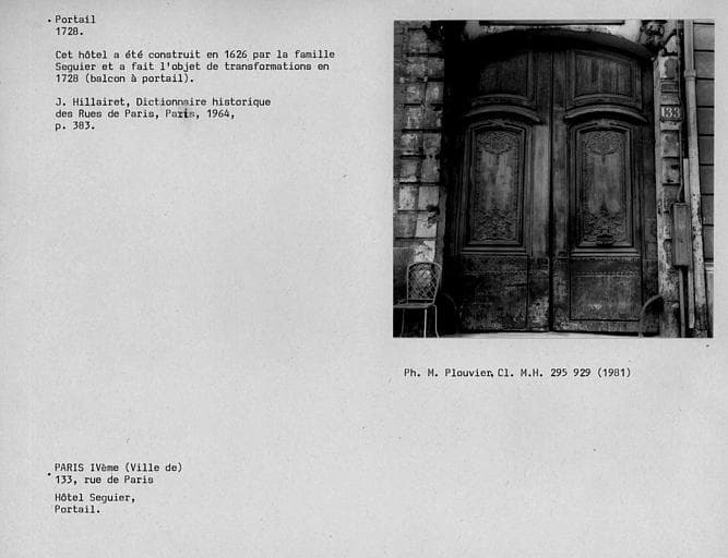 © Monuments historiques, 1992. Cette notice reprend intégralement les termes de l’arrêté de protection au titre des Monuments historiques. Elle répond à l’obligation réglementaire du ministère de la Culture d’établir la liste générale des immeubles protégés (art. R. 621-80 du Code du patrimoine). Elle est donc opposable et fait foi juridiquement. Aucune copie numérique ou papier ne sera fournie par courrier ni courriel. Le dossier de protection complet et l’arrêté sont consultables uniquement sur place, dans la salle de lecture de la Médiathèque du patrimoine et de la photographie (MPP), à Charenton-le-Pont (Val-de-Marne).