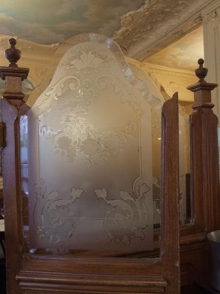 Restaurant d'angle avec un décor typique de la Belle Epoque, réalisé vers 1909, peu après l'ouverture de la rue Jules-Vallès, en 1904. La grande salle est divisée en deux parties par une demi-cloison de bois et de verre gravé. Ancien café "Au réveil matin".