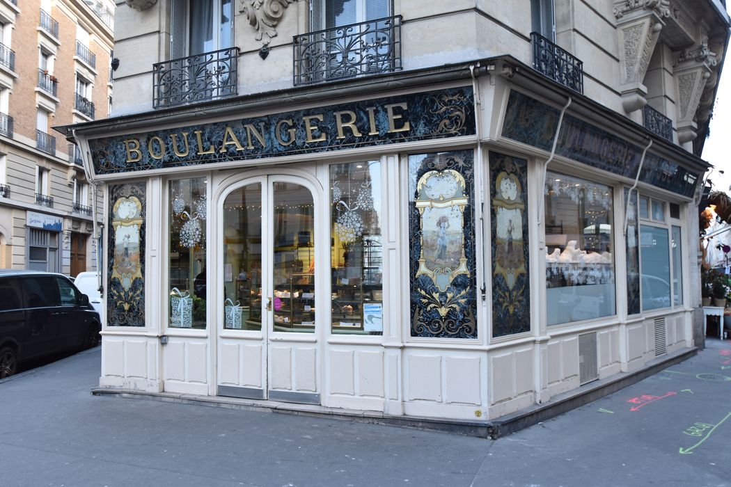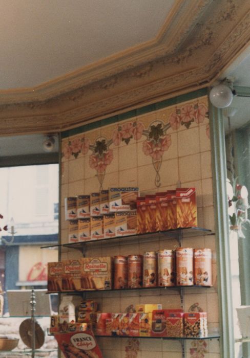 Boulangerie aménagée en rez-de-chaussée d'un immeuble d'angle construit en 1906. La devanture comporte des panneaux peints fixés sous verre, signés de T. Luc et représentant des scènes de moisson. A l'intérieur, les murs sont recouverts de carreaux de céramique, agrémentés d'une frise de fleurs stylisées.