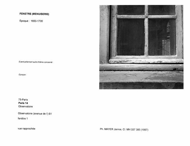 Île-de-France ; Paris (75) ; Paris 14e Arrondissement ; Observatoire (avenue de l') 61