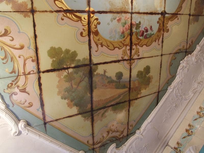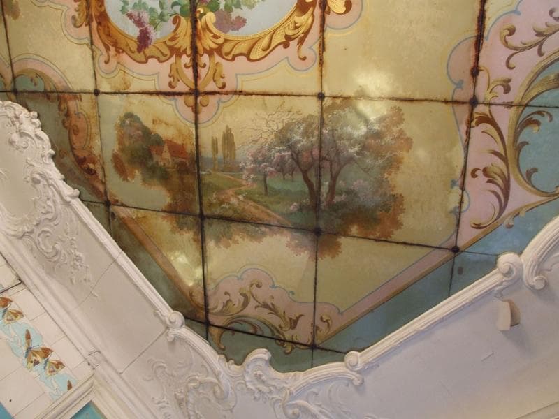 Devanture exécutée à partir d'un coffrage en bois. Décor fixé sous verre.