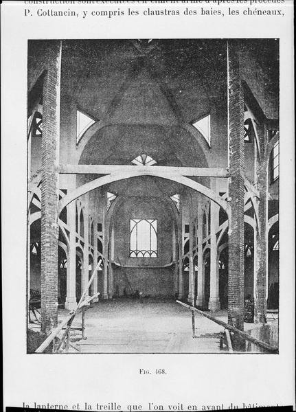 Construction de l'église réalisée entre 1894 et 1904 par l'architecte Anatole de Baudot qui utilise le ciment armé. La nef est couverte de coupoles nervées.