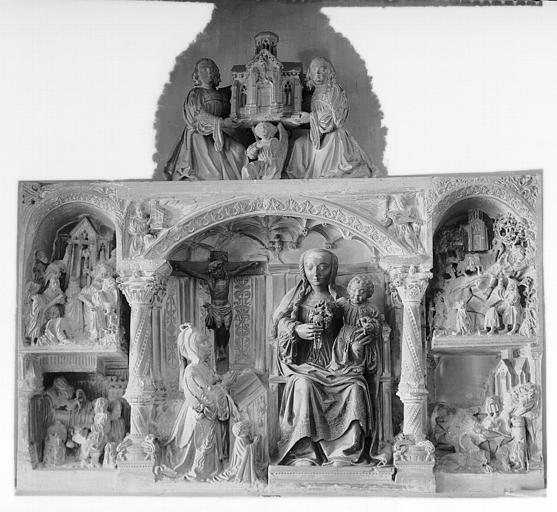 © Monuments historiques, 1992. Cette notice reprend intégralement les termes de l’arrêté de protection au titre des Monuments historiques. Elle répond à l’obligation réglementaire du ministère de la Culture d’établir la liste générale des immeubles protégés (art. R. 621-80 du Code du patrimoine). Elle est donc opposable et fait foi juridiquement. Aucune copie numérique ou papier ne sera fournie par courrier ni courriel. Le dossier de protection complet et l’arrêté sont consultables uniquement sur place, dans la salle de lecture de la Médiathèque du patrimoine et de la photographie (MPP), à Charenton-le-Pont (Val-de-Marne).