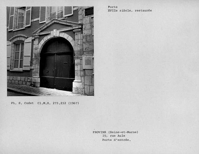 Île-de-France ; Seine-et-Marne (77) ; Provins ; 15 rue aux Aulx