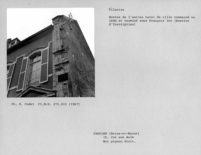 Façade de la maison, y compris les restes de l'ancien Hôtel de Ville : inscription par arrêté du 17 avril 1931