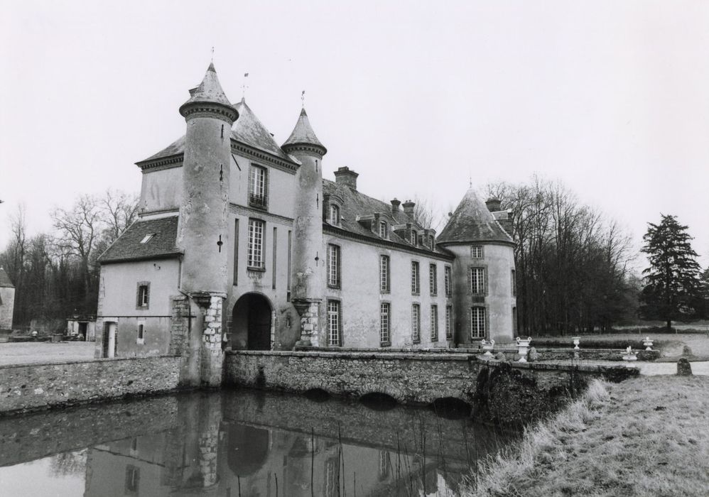 Façades et toitures du château et des communs, y compris des deux tours ; jardin enserré de douves ; douves et les deux ponts sur les douves ; à l'intérieur : escalier central y compris le dôme et les balustres de bois, cheminées avec trumeaux de la grande chambre dans l'aile Nord et de la chambre dite de Trudaine (cad. B 5, 6, 8, 9) : inscription par arrêté du 21 décembre 1984