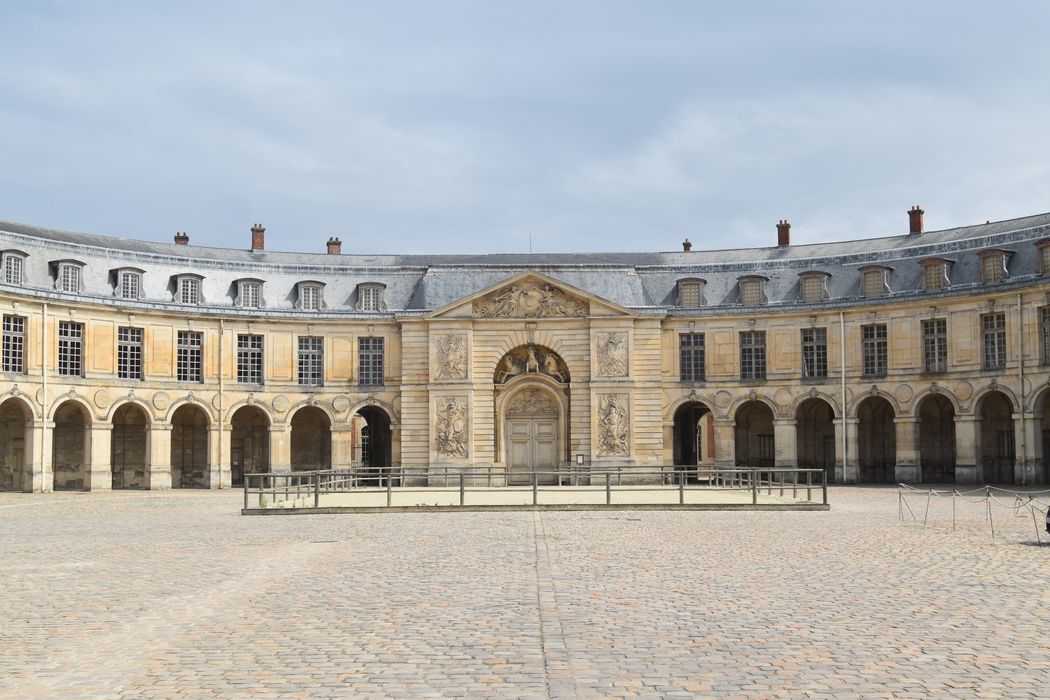 Par le décret n°2024-472 du 24 mai 2024, le Domaine national du château de Versailles se substitue au classement partiel : Façades sur la cour d'honneur ; façades des deux pavillons et grilles en bordure sur la place d'Armes ; façades en retour sur les avenues de Paris et de Saint-Cloud (cad. 2015 AE 382) : classement par arrêté du 20 août 1913 ; Déjà classé 1862 (Liste). Cadastre pris sur un formulaire travaux établi en 2015.