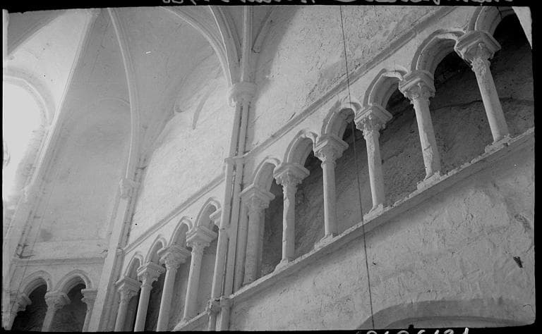 Témoignages de maçonneries préromanes sous le choeur. Dispositions actuelles du 12e siècle, modifiées au 13e siècle (reconstruction du choeur en élévation et des couvrements de la nef) et fin 15e-début 16e siècle (réfection des charpentes et de la nef, ainsi que celle du choeur et les voûtes de la nef et de ses bas-côtés). Le choeur a porté un ensemble de lambris en bois aujourd'hui disparu. Enduits et décors peints en partie perdus.