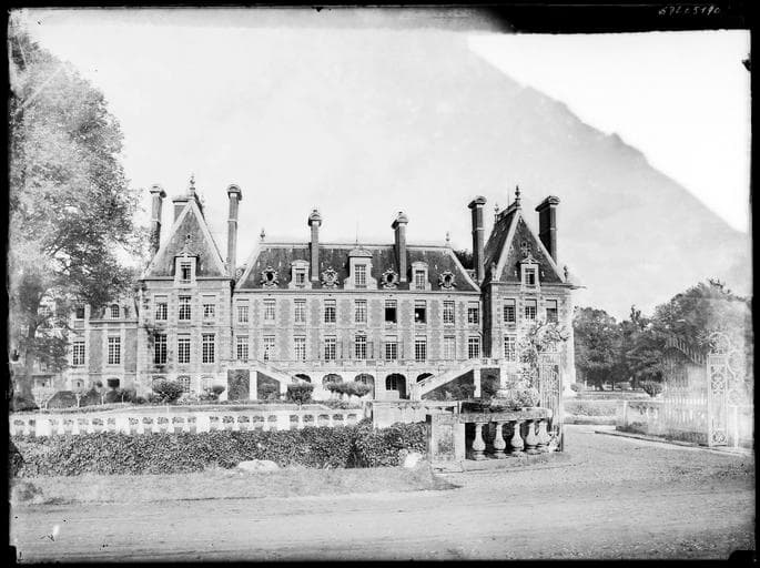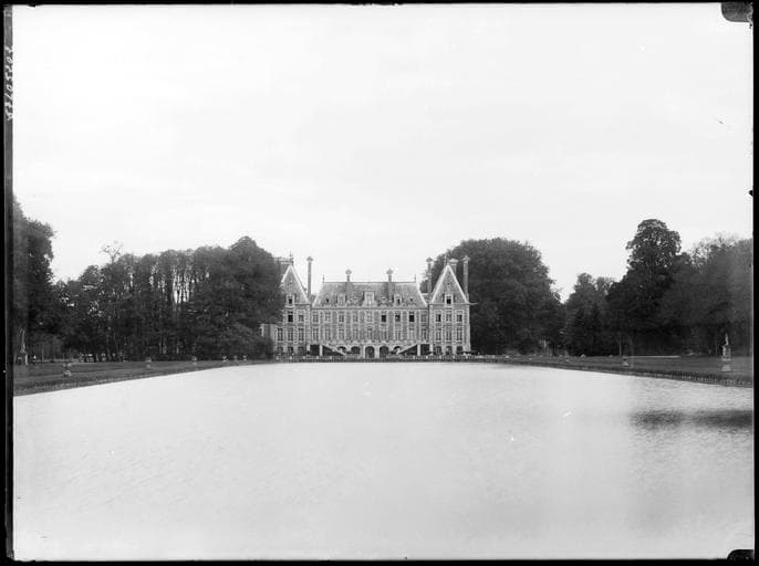 Les façades et les toitures du château y compris les deux escaliers extérieurs des communs et des deux pavillons en bordure des douves ; le parc ordonnancé et clos de murs avec ses pièces d'eau, y compris les douves et l'ancien moulin à foulon ; l'allée d'accès dans la perspective de la façade de la cour d'honneur (cad. F 4, 6, 8, 9, 12 ; G 6) : classement par arrêté du 27 juin 1983