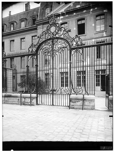 Les façades et toitures du pavillon dans la cour de l'école avec son escalier extérieur et les balustrades qui l'entourent ; la grille d'entrée du 18e siècle en avant de la façade principale de l'école ; la porte d'entrée dans la cour du Roi avec sa grille en fer forgé et les façades et toitures des pavillons adjacents à cette grille ; les façades et toitures du bâtiment principal de l'école avec l'escalier d'honneur et sa porte en fer forgé, la bibliothèque avec sa décoration, la salle d'études du premier étage avec piliers de bois ; les façades et toitures du pavillon dit du Roi ; la salle des gardes, la fontaine dans ladite salle, le boudoir du Roi : inscription par arrêté du 30 octobre 1935
