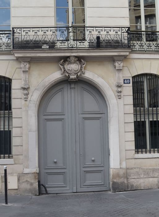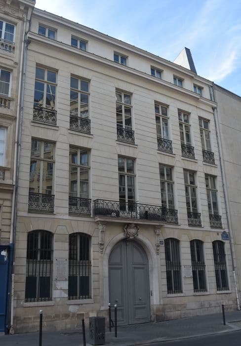 La façade sur rue et la façade postérieure du bâtiment sur rue ; les toitures correspondantes ; la cage d'escalier et la rampe en fer forgé : inscription par arrêté du 24 juin 1964