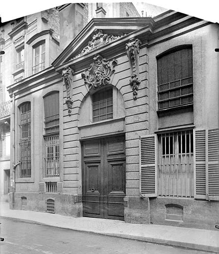 Façade sur rue ; la baie donnant accès à l'escalier et rampe d'escalier en fer forgé : inscription par arrêté du 16 mars 1926
