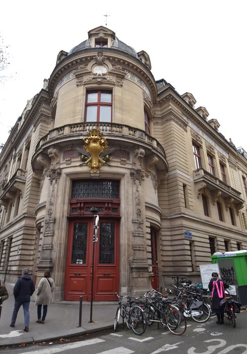 Immeuble construit en 1878-1879 par Charles Garnier pour le Cercle de la Librairie, association d'éditeurs et de libraires, fondé en 1847. L'immeuble s'articule autour de la rotonde située à l'intersection de deux rues.