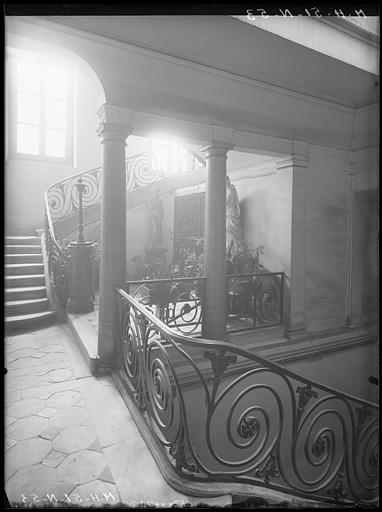 Escalier avec sa rampe en fer forgé et sa cage : inscription par arrêté du 4 octobre 1962