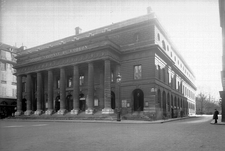 Théâtre érigé à la fin du 18e siècle par les architectes Peyre et de Wailly sur le terrain de l'hôtel de Condé. Il s'élève sur une place semi-circulaire permettant de transformer l'espace en théâtre de plein air. Victime d'incendies à deux reprises, il fut reconstruit par Chalgrin en 1808, puis par Baraguey en 1818.