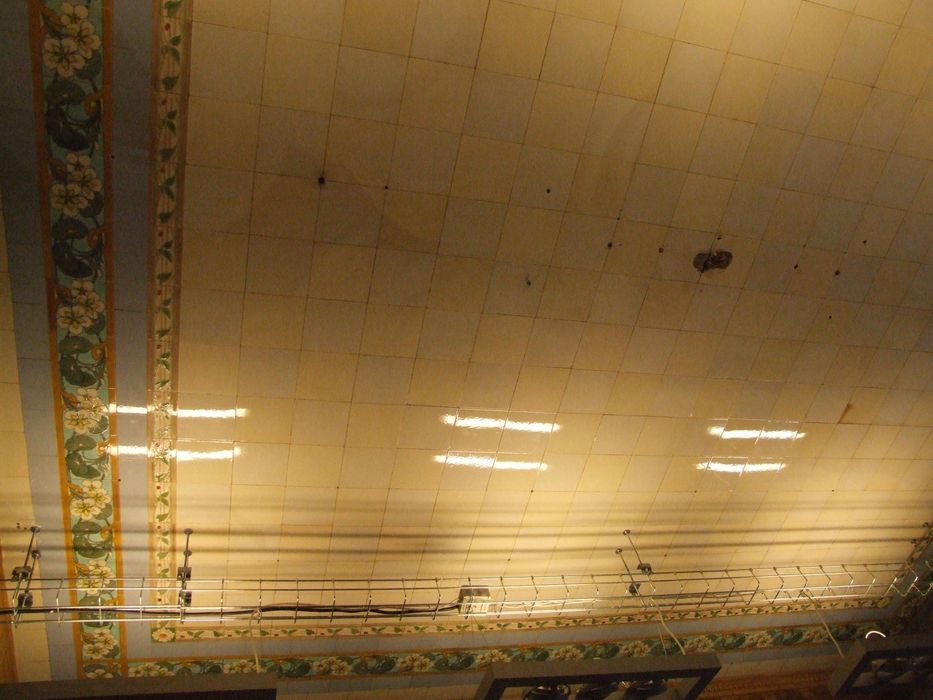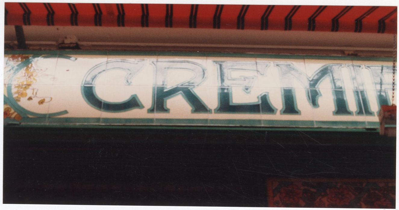 Crémerie-glacier installée en 1903 avec une devanture de carreaux de faïence représentant des paysages champêtres.