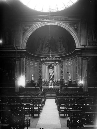 Première église détruite en 1739, église actuelle édifiée entre 1774 et 1784 par CHALGRIN. Quelques modifications au 19e siècle (déambulatoire et chapelle axiale par E.H. GODDE en 1845 ; chapelle des Catéchismes par Victor BALTARD en 1853). Voûte du choeur peinte par CHASSERIAU en 1855. Claudius JACQUAND pour les peintures également.