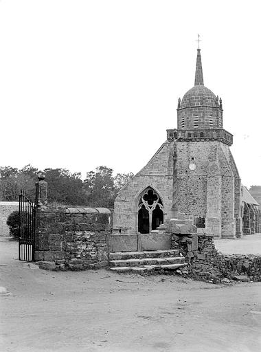 Rare exemple d'architecture romane bretonne, cette église en granit du 12e siècle est surtout intéressante par les sculptures du porche et des chapiteaux historiés de la nef. Y serait représenté, entre autre, le combat du roi Arthur et d'Eflam contre le dragon qui avait élu domicile à l'abri du rocher de Roch Hirglas, près de Lannion. La partie haute de l'édifice, du centre au chevet, est un gothique du 15e siècle.