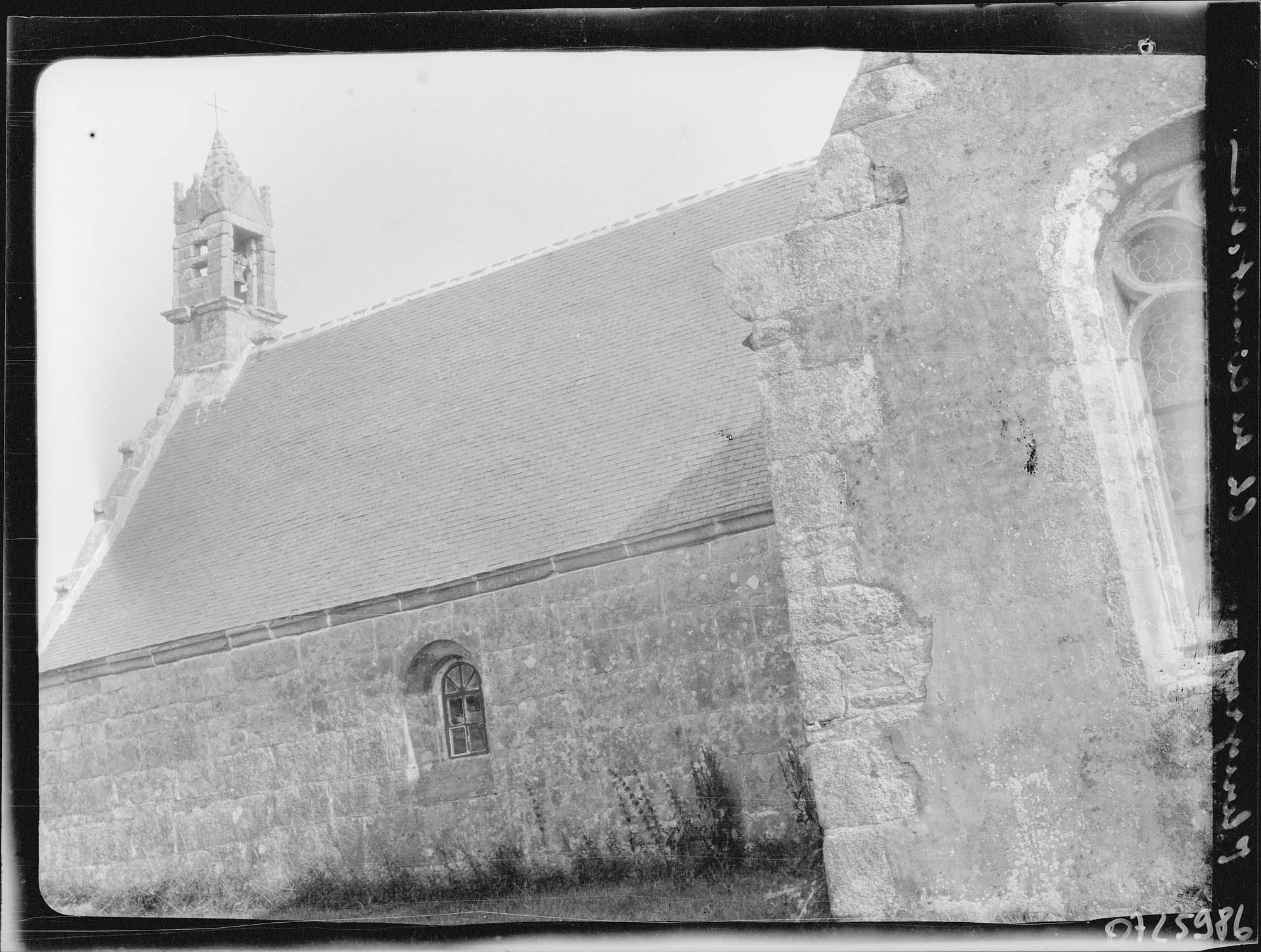 Chapelle du 16e siècle, ayant subi quelques restaurations en 1787. Edifice de plan en croix latine, en granit appareillé. A l'intérieur, voûte en lambris et sablières sculptées. A l'ouest, le pignon est ouvert par une porte en plein cintre flanquée de colonnettes plates soutenant un entablement droit. Les rampants du pignon sont ornés de crochets sculptés. Le pignon soutient un petit clocheton carré surmonté d'une flèche ajourée de pierre. Au sud, le pignon du transept est ouvert d'une fenêtre en plein cintre à remplage trilobé. Chevet plat. L'intérieur est composé d'une nef simple, de deux transepts et du choeur. La voûte est lambrissée. Les sablières représentent des scènes religieuses et de vie locale.