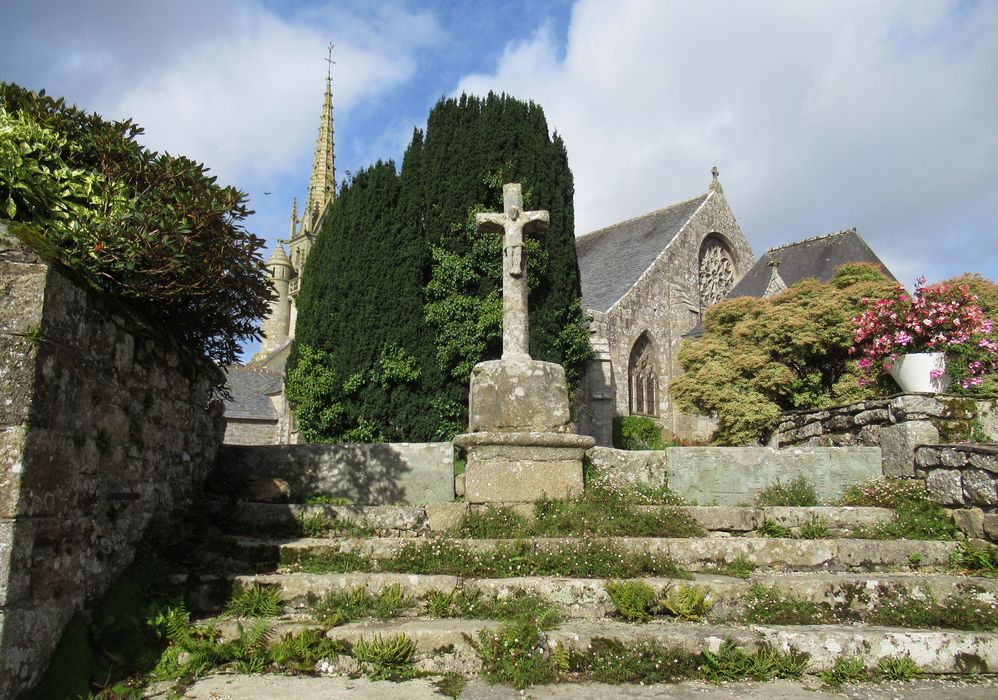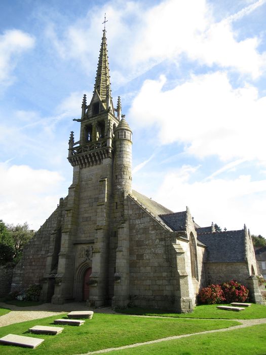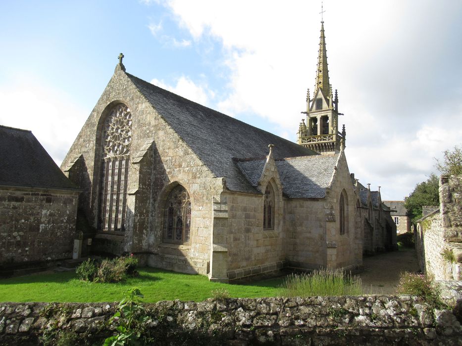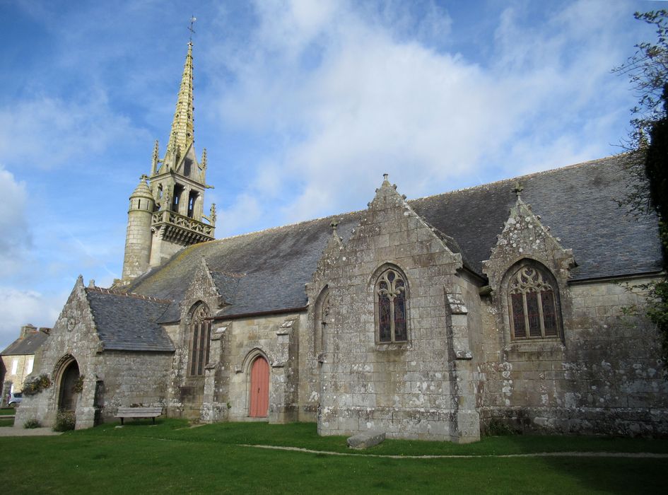 Eglise du 16e siècle, comprenant une nef à chevet carré, flanquée de bas-côtés et de deux petites chapelles formant transept. Le porche d'entrée se situe sur la face nord, le clocher sur celle de l'ouest. L'édifice présente le type de l'église bretonne, avec ses murs en granit, ses baies surmontées de pignons, ses grandes toitures d'ardoises, et ses voûtes en bois. La porte conserve une curiosité, le "trou du lépreux".