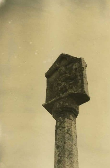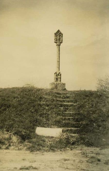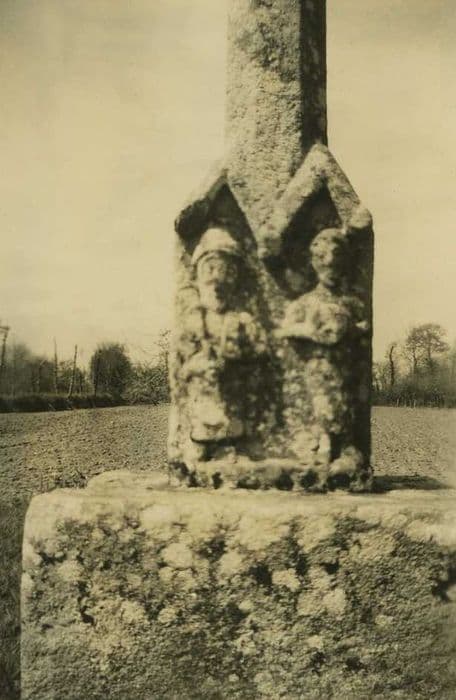 La base se compose de personnages isolés, sous une forme triangulaire, autour d'un fût octogonal. Le motif est présenté comme bas-relief à deux rampants, sur forme trilobée. L'ensemble se trouve dans le fond du cimetière.