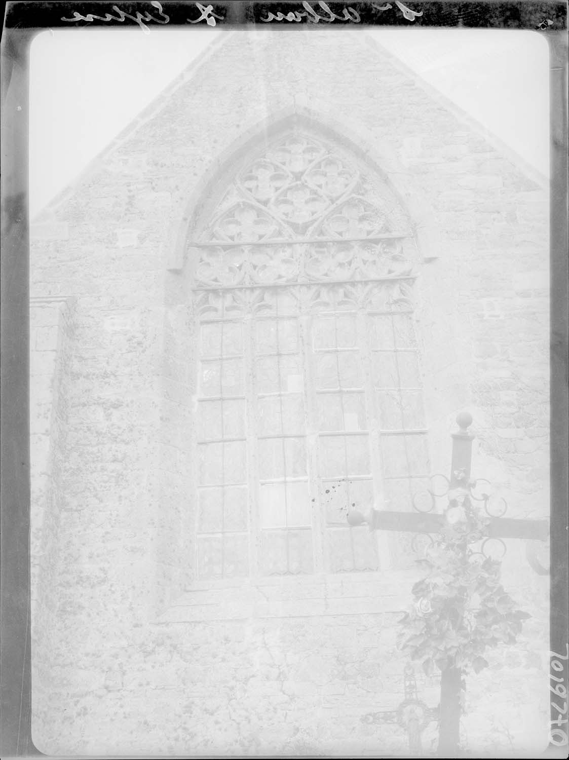 Edifice rectangulaire du 16e siècle, inachevé dans son plan primitif, auquel a été ajouté plus tardivement un appendice séparé de la construction ancienne par un arc diaphragme. La première partie fut achevée en 1548. Trois fenestrages du choeur se composent de deux, trois et quatre meneaux. Le tympan est garni de gros reliefs. Porte latérale en anse de panier. Au-dessus de la porte principale et de l'oculus, un clocheton formé d'une pyramide à quatre pans entourée de frontons, domine l'avant nef.