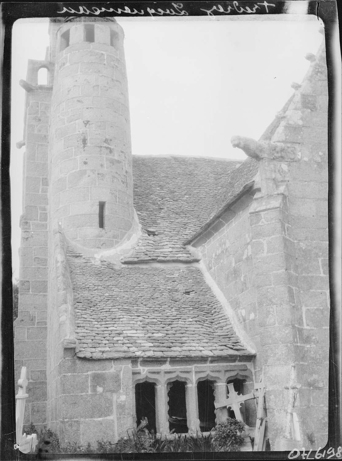 Edifice sans doute du 16e siècle, présentant un plan dissymétrique qui semble voulu et non résultant de transformations successives. Le clocher ne paraît pas antérieur au 17e siècle.