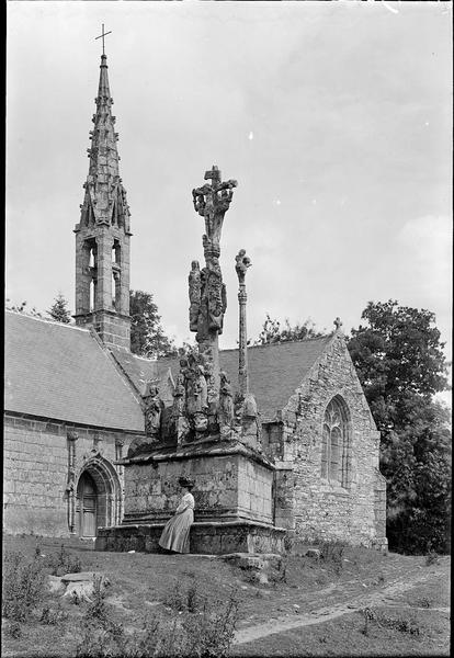 Avec son calvaire (daté de 1556) et sa fontaine, la chapelle est un exemple de petit ensemble breton. C'est une chapelle en granit à chevet plat peu saillant, grand transept et nef sans bas-côté. Le petit clocher se termine par une flèche octogonale en pierre reposant sur un pilier carré, porté par un socle carré soutenu par un arc à l'intersection de la nef et du mur ouest du transept. Le calvaire repose sur un socle triangulaire. Sur un piédestal triangulaire, deux masses triangulaires se compénètrent. Autour, sont rangés les douze apôtres. Au-dessus, se dresse la croix du Christ accostée de celles des larrons.
