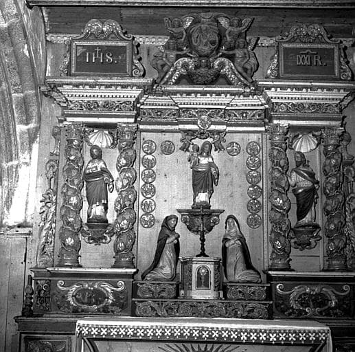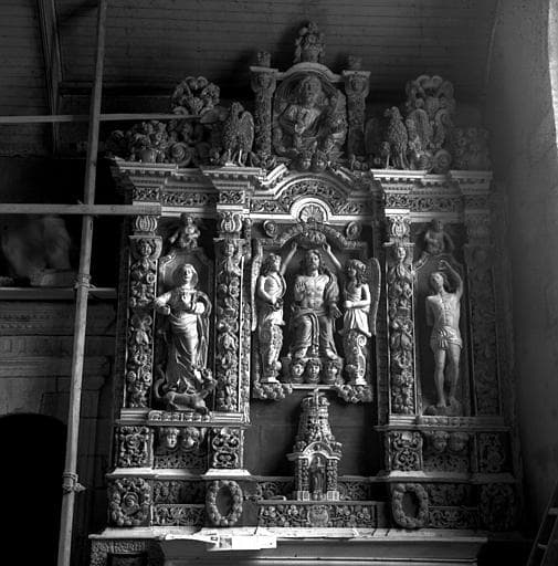 Eglise de la fin du 16e siècle, composée de trois nefs et recouvert d'une voûte en bois dont quelques sablières sont sculptées et peintes. A l'église s'adosse au sud un porche de 1662 ayant les caractères d'une oeuvre du 16e siècle. Chapelle funéraire de 1686. Calvaire de 1742. La clôture du cimetière, à arc triomphal, est fermée par une grille en fer forgé du 17e siècle.