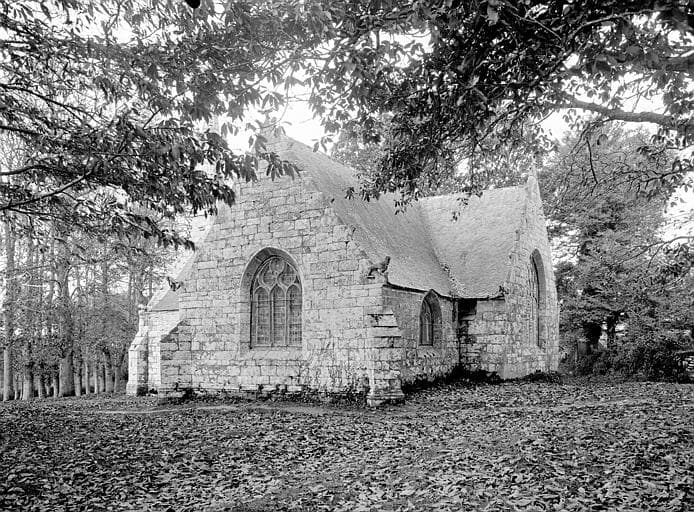Edifice de la fin du 15e siècle construit en granit et couvert d'ardoises. Elle se compose d'une nef, d'un transept et d'une abside rectangulaire. La façade ouest est surmontée d'un clocheton. Cette façade est percée d'une porte avec anse de panier et accolade. Les grandes fenêtres à meneaux sont de forme ogivale. Les rampants des pignons sont ornés de crochets et d'amortissements sculptés représentant des animaux. Du côté nord, une figure de lutteur pourrait représenter Saint-Cado. Au nord de la nef se trouve la sacristie du 16e siècle percée d'une fenêtre Renaissance. Près de la chapelle se trouve un petit oratoire du 16e siècle. Sur les trois faces ouvertes, un mur bahut forme clôture. Un calvaire est adossé à l'oratoire, au-dessus de trois gradins. Le Christ et cinq anges subsistent. Au bas du placître est construite une fontaine du 15e siècle, abritée sous une arcade en anse de panier.